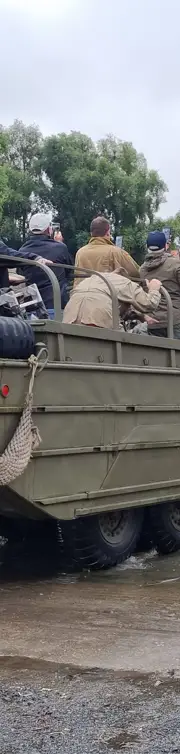 Een konvooi met militaire voertuigen uit de Tweede Wereldoorlog reden vandaag van Loppem (van het Camph) naar Brugge met een tussenstop op het Zand. De amfibievoertuigen reden naar de Yachtclub Flandria aan de Katelijnebrug waar ze te water gingen en zorgden voor heel wat bekijks. Het was een mooie promotie voor hun event in Loppem.