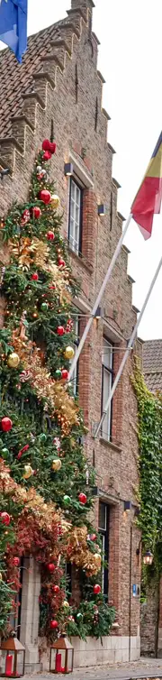Gevel van Brugse hotel in kerststemming
