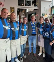 Het team van de Carré op de Markt in Brugge viert mee met Club Brugge die zondagavond kampioen geworden is.
