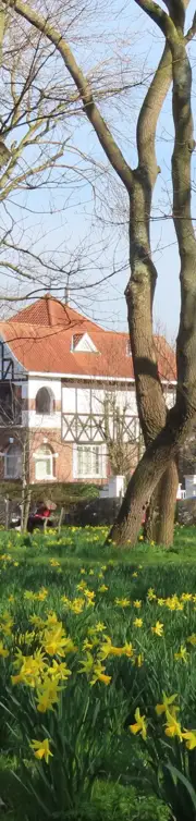 Het groene park vind je aan de overkant van het Gemeentehuis.