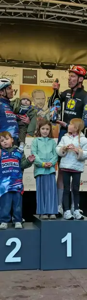 Na aankomst van het afscheidscriterium in Hooglede werd de top drie gehuldigd. Tim won zijn eigen afscheidscriterium. Het voltallige schepencollege met burgemeester brachten hulde aan de eerste drie renners. Straks volgt nog een hulde van Tim en zijn aanstelling als ereburger van de gemeente. 50 renners kwamen vandaag aan de start.