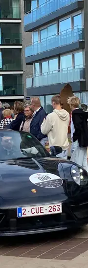 Op de Zeedijk in Knokke is er bijzonder veel volk voor de aankomst van de wagens van de GT Tour. Velen staan klaar met de gsm of hun fototoestel om de wagens op foto vast te leggen. Na de aankomst kan je de wagens op de Zeedijk bewonderen. Ze staan naast elkaar geparkeerd.