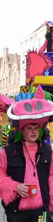 Veel volk, wagens en groepen voor carnavalsstoet in Brugge